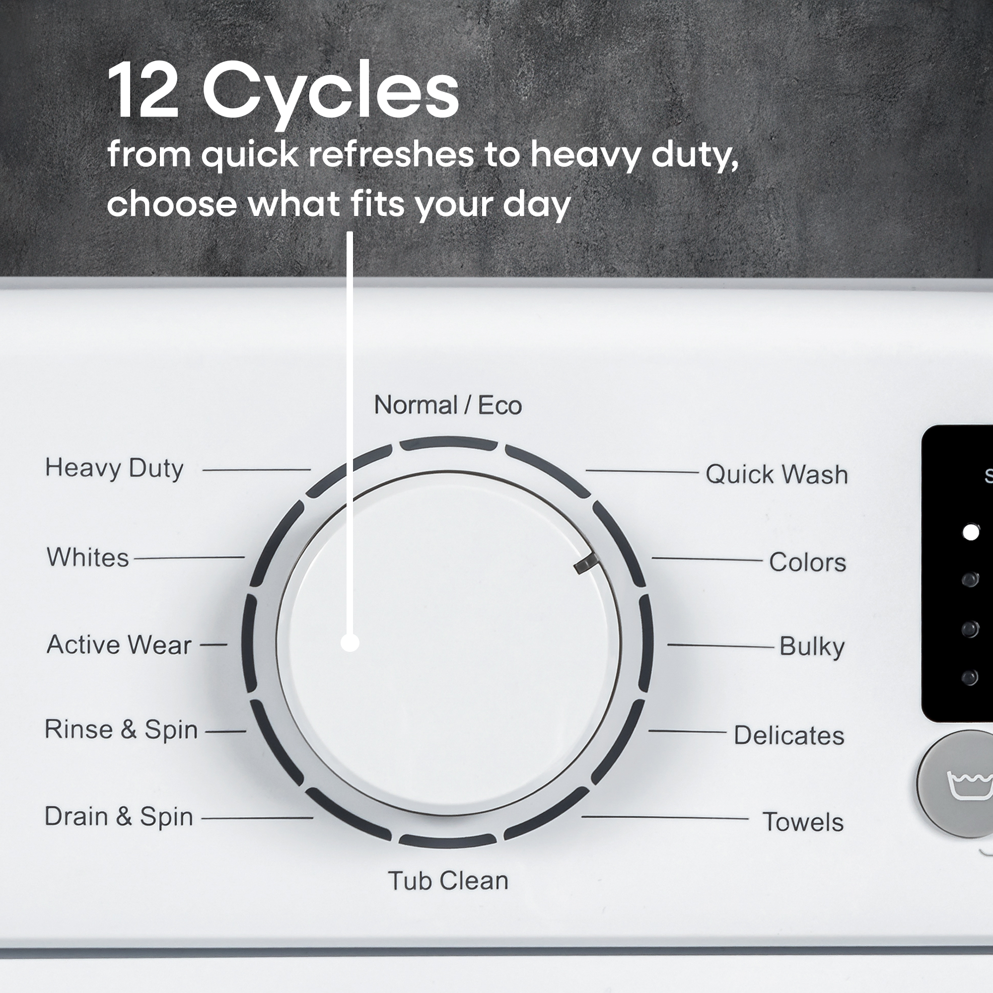 Whites, Normal, Activewear, Heavy Duty, Bulky, Colors, Quick Wash, Delicates, Tub Clean, Towels, Rinse & Spin, Drain & Spin