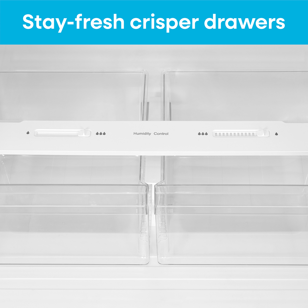 Stay-fresh crisper drawers with humidity control help fruits & vegetables stay fresh.