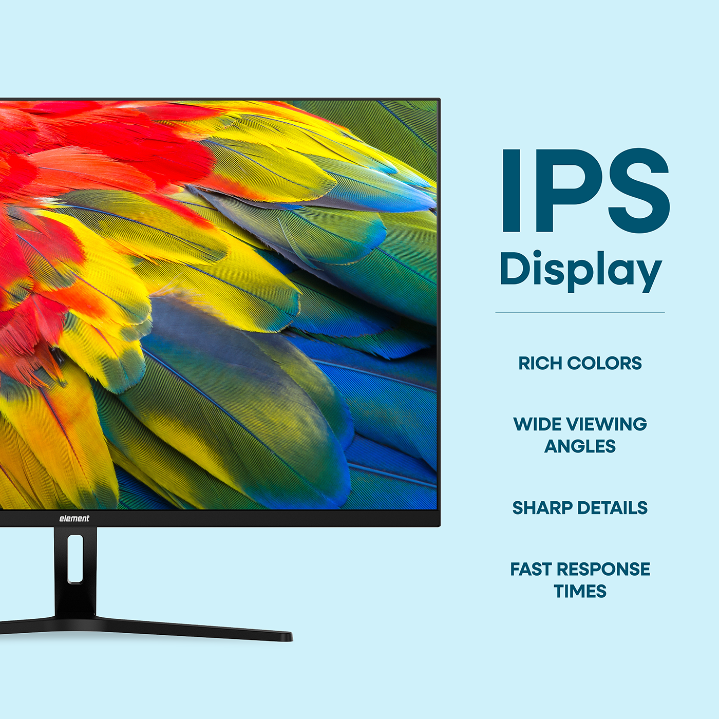 Element’s 27” 1080P frameless computer monitor with an IPS LCD with LED backlight provides simple connectivity to get straight to work, school or personal tasks and projects. Whether you’re adding a new monitor to your work-from-home set-up or to stay in touch with family and friends, this computer monitor is sure to impress.