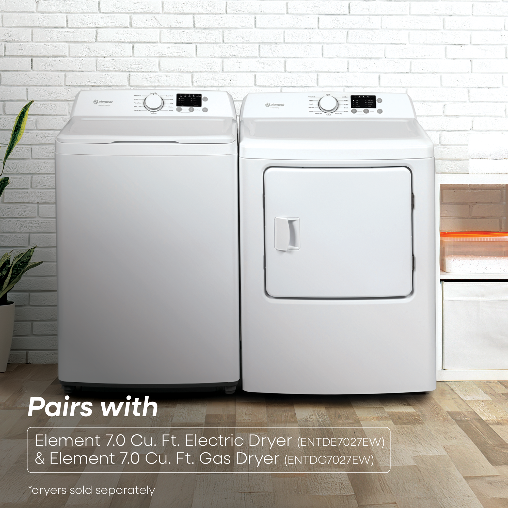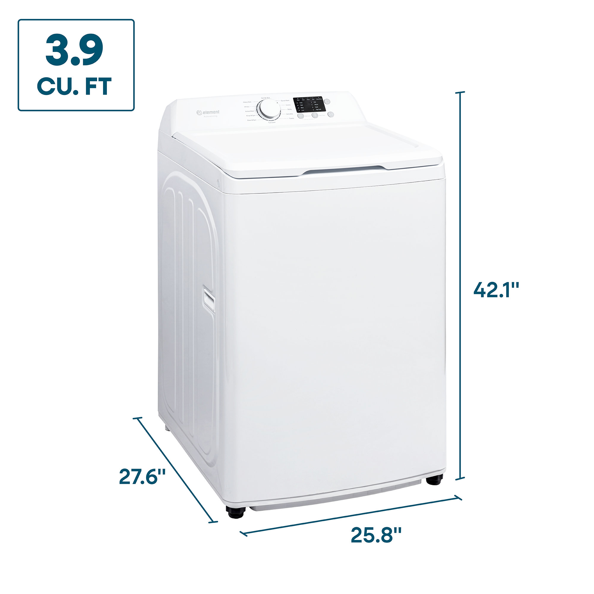 Efficient, spacious, and dependable, Element’s 3.9 cu. ft. top load washer boasts all the features you need for a top-notch clean. Choose from 12 different wash cycles to match your fabrics from delicate to bulky. Pair the perfect temperature and care for your clothing by selecting from four wash temperatures. The agitator provides a hard hitting clean that’s gentle on fabrics. The stainless steel drum is spacious and durable for continued use. Plus, Element’s washers are HE detergent compatible, making your wash cycles more efficient while using less water. Go ahead — take it for a spin.