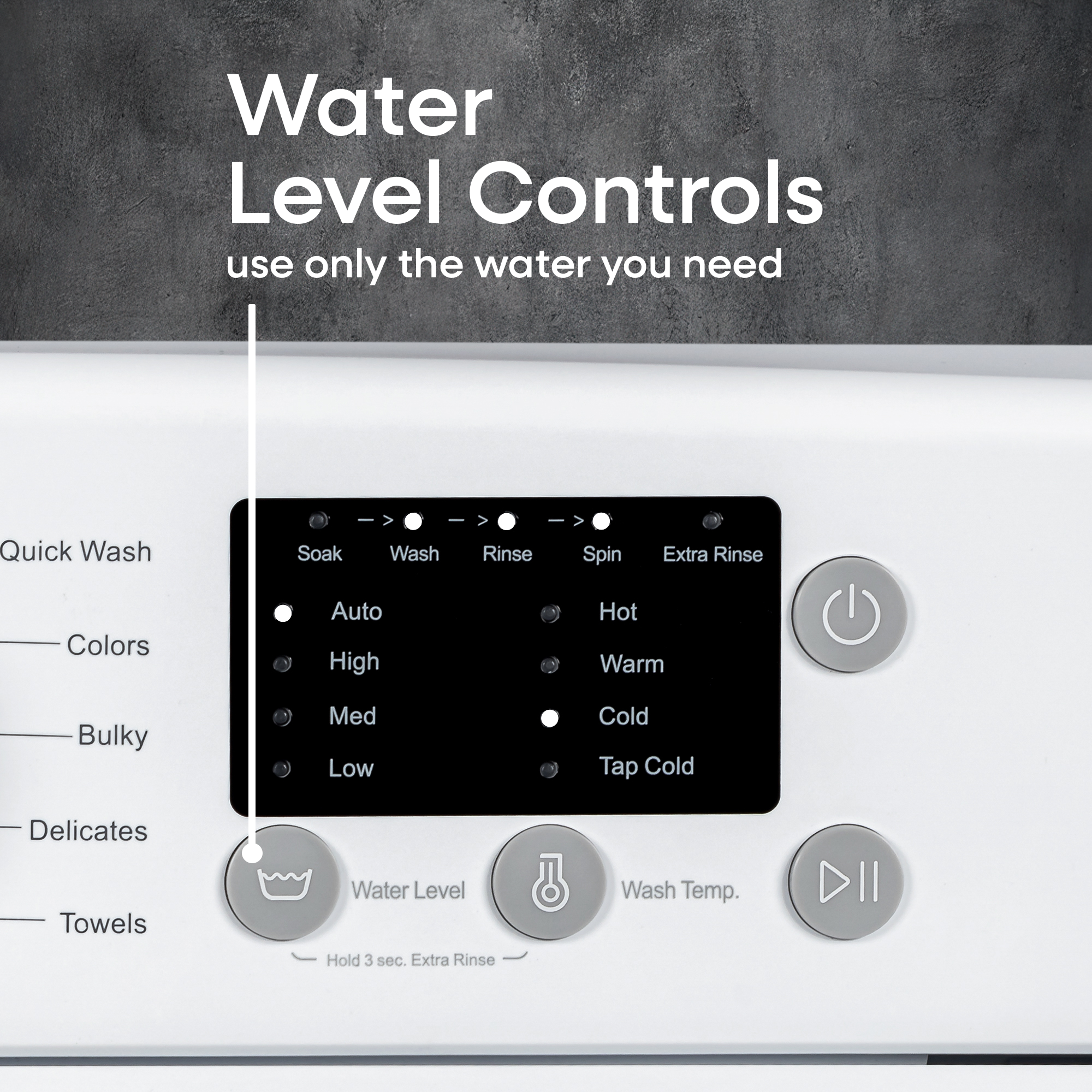 Water level control automatically senses the load size to set the proper water level or offers the option to manually choose a water level.
