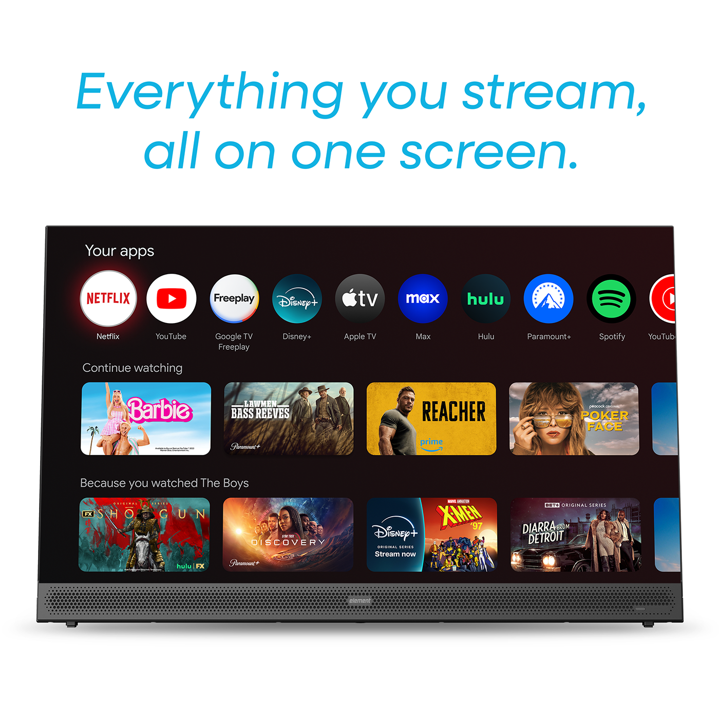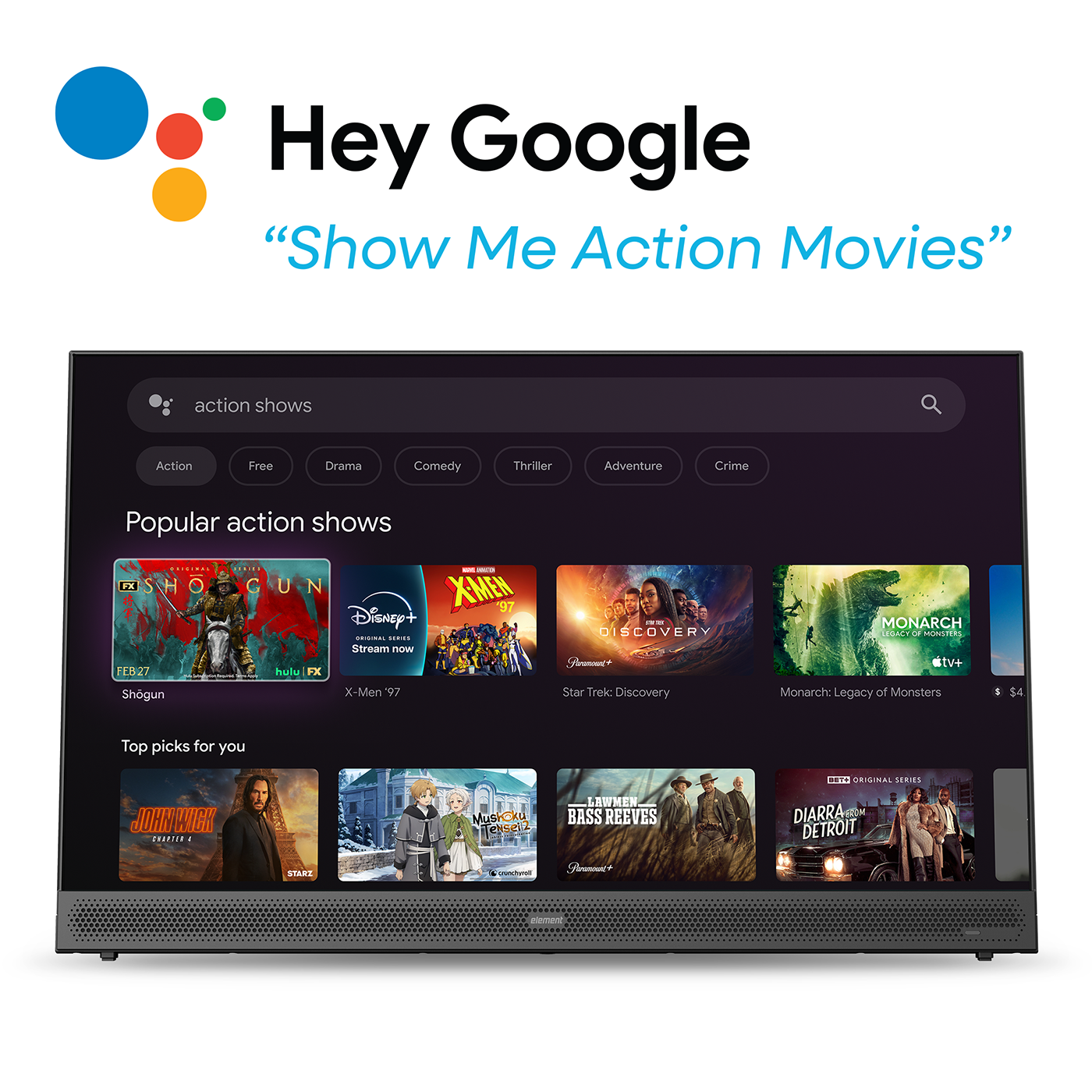 Google TV brings all your entertainment to one screen with no app-switching needed. Stream, watch live TV, cast from another device and use Google Assistant to search and discover new favorites. Wherever you set it up, this TV makes it easy to enjoy the entertainment you love.