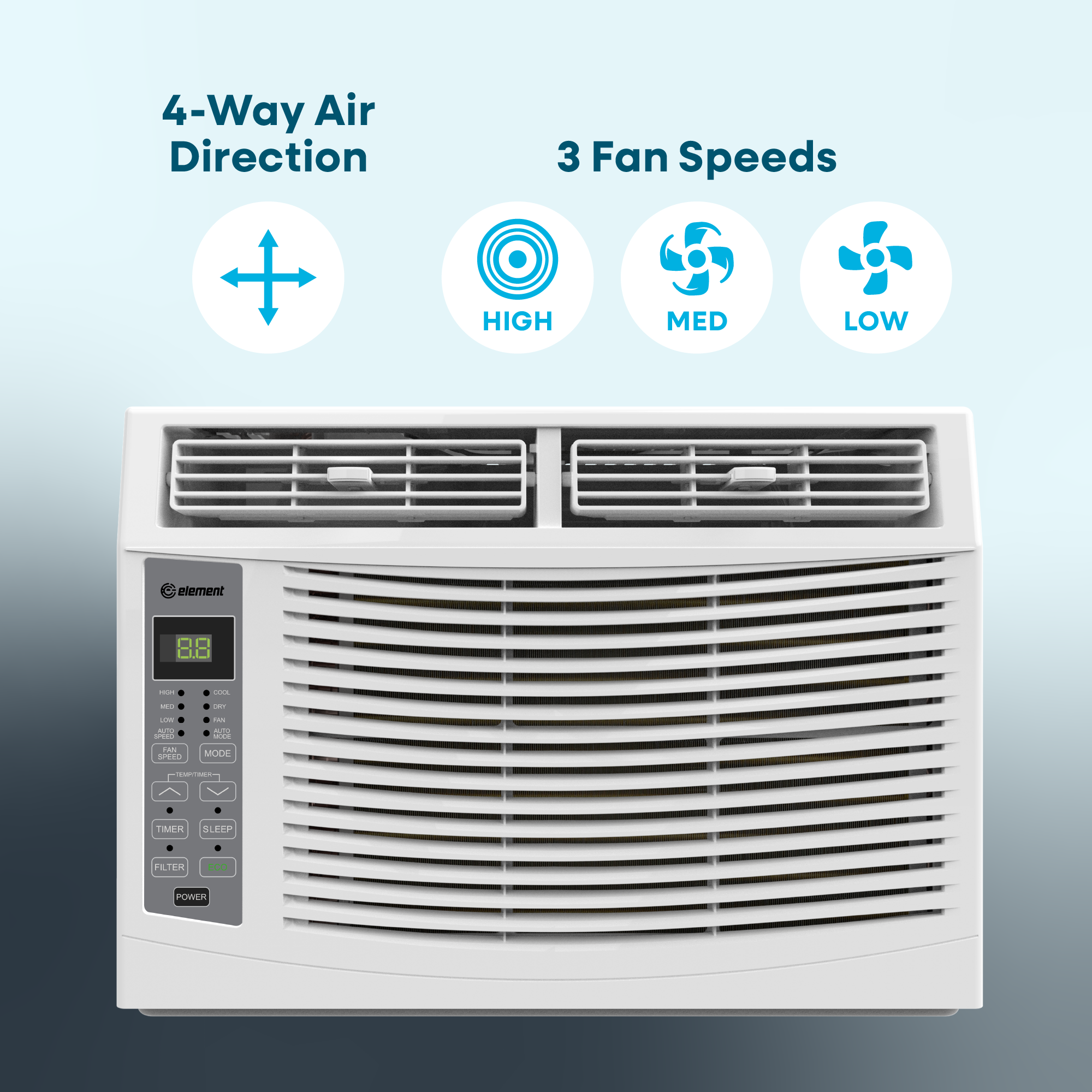 Stay cool without the hassle. The 5,000 BTU Window Air Conditioner quietly cools up to 150 square feet with simple remote-control operation and energy-efficient cooling that keeps your bills down. Installation is straightforward; it fits standard double-hung windows, and you’ll have cool air flowing in under an hour. A built-in dehumidifier removes sticky humidity, Sleep Mode keeps you comfortable through the night, and the washable filter means no expensive replacements. The Element 5,000 BTU Window Air Conditioner has everything you need to stay comfortable all season long.