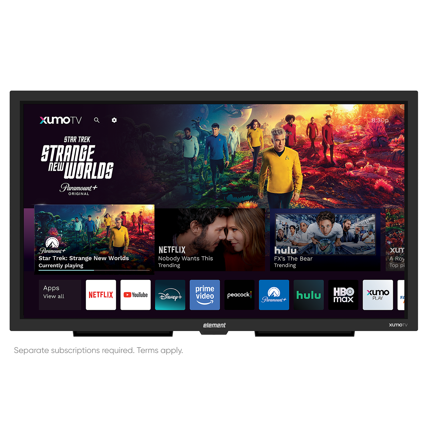 Enjoy a simple, responsive user interface, hundreds of apps, and super simple search with the smart Xumo TV experience on Element televisions. The home screen on your Element Xumo TV showcases your top picks, making it easy to dive into your favorite content.