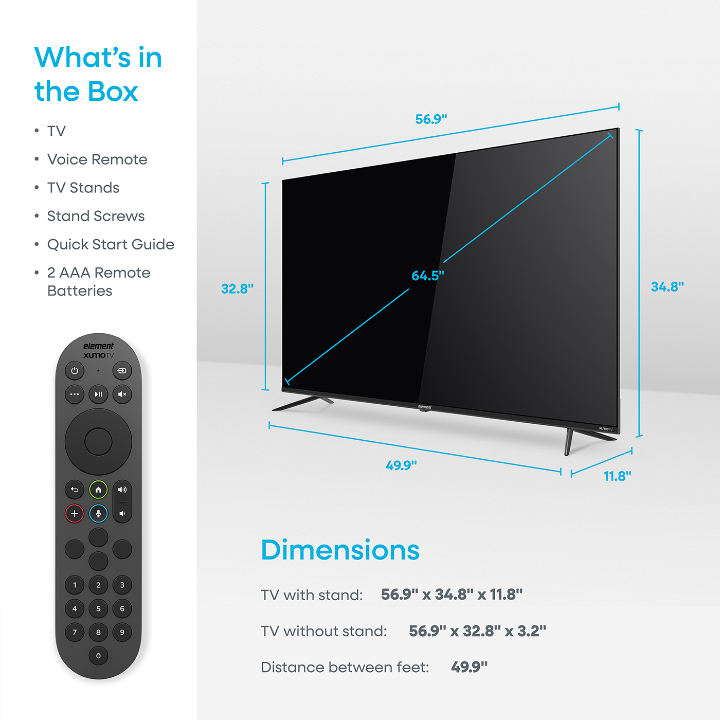 Experience breathtaking picture quality with Element’s 65 inch Xumo TV. With its 4K Ultra HD resolution, you’ll enjoy a stunningly clear and detailed image that brings your favorite movies, TV shows, and video games to life. Plus, Dolby Vision® and HDR technology provide enhanced color and contrast for an even more immersive viewing experience – even in the darkest of scenes. Dolby Audio™ delivers superior sound for immersive movie watching and gaming. And with a 120Hz effective refresh rate, you’ll never miss a moment of the action, even during fast scenes. Enjoy smoother motion and sharp visuals while playing video games or watching fast-moving shows and movies.