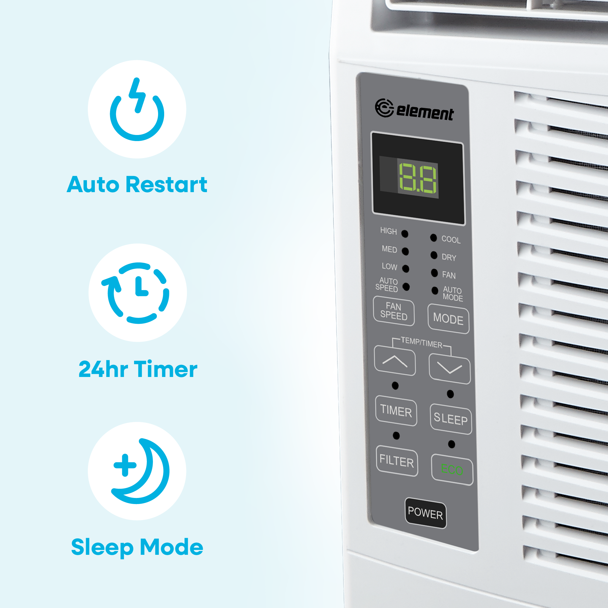 Stay cool without the hassle. The 8,000 BTU Window Air Conditioner quietly cools up to 350 square feet with simple remote-control operation and energy-efficient cooling that keeps your bills down. Installation is straightforward; it fits standard double-hung windows, and you’ll have cool air flowing in under an hour. A built-in dehumidifier removes sticky humidity, Sleep Mode keeps you comfortable through the night, and the washable filter means no expensive replacements. The Element 8,000 BTU Window Air Conditioner has everything you need to stay comfortable all season long.